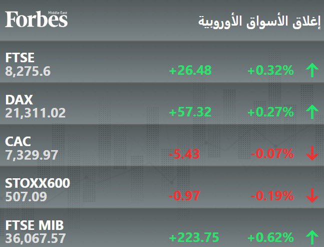الأسواق الأوروبية تغلق على تباين، ومؤشر ستوكس 600 الأوروبي يتراجع متأثرًا بأداء أسهم شركات أشباه الموصلات، بعد أن نوه أكبر مورد لمعدات تصنيع الرقائق في العالم ASML الهولندية إلى أن الضبابية التي تكتنف توقعات نشاطها في 2025 و2026 تتزايد بفعل الرسوم الجمركية الأميركية. #فوربس