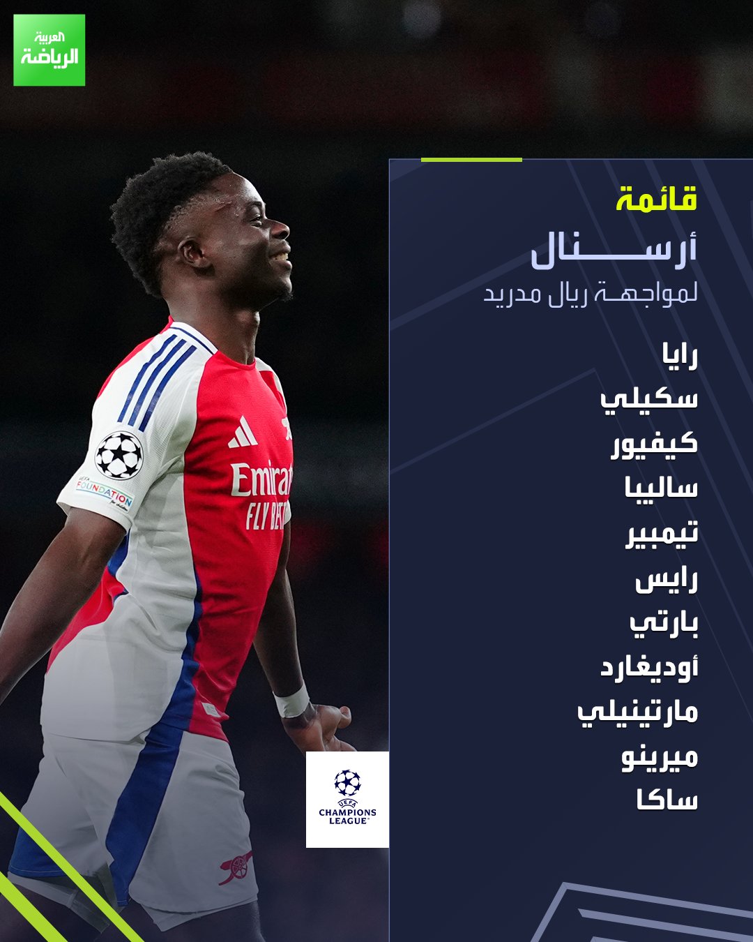 ساكا يبدأ أساسياً في قائمة أرسنال لمواجهة ريال مدريد ب دوري أبطال أوروبا _رياضة
