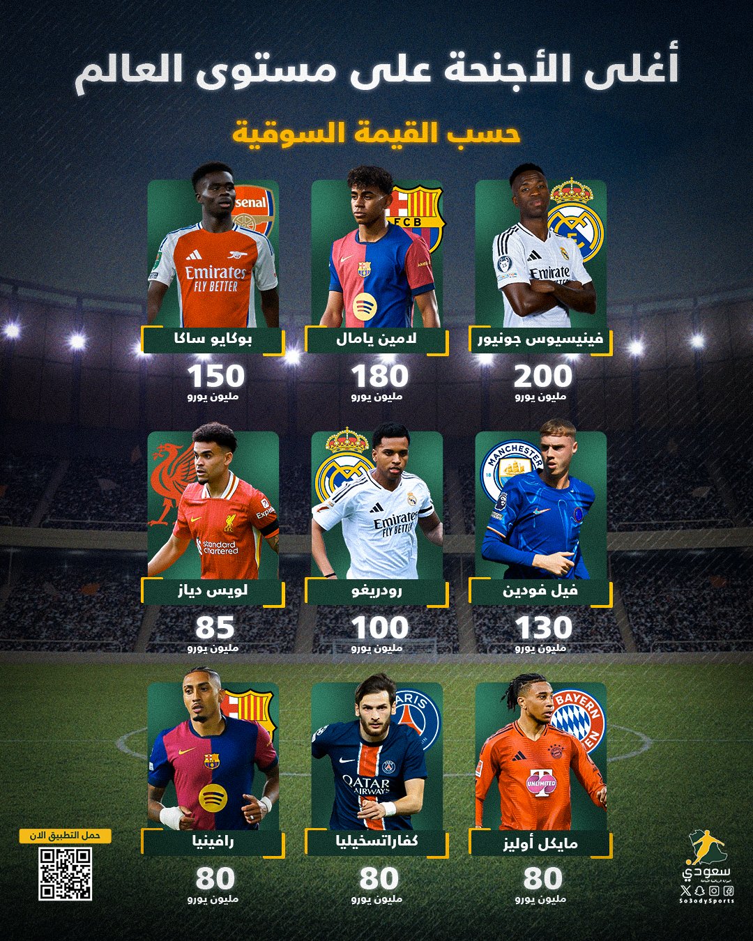 جناحا ريال مدريد و برشلونة في الصدارة.. قائمة أغلى اللاعبين - قيمة سوقية - الذين يشغلون مركز "الجناح" حول العالم |
