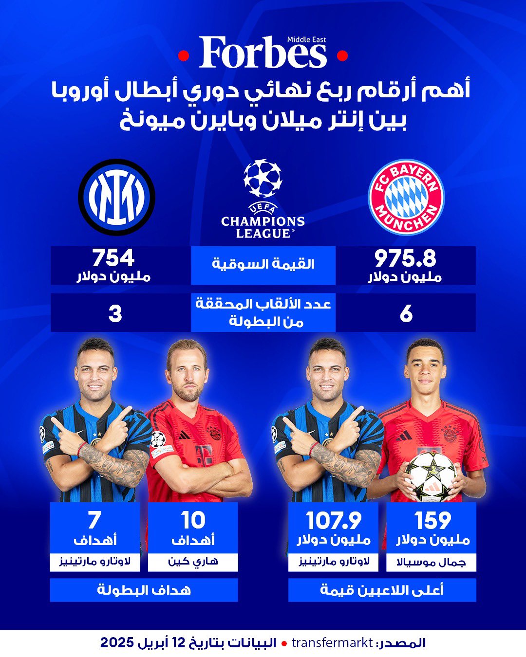 إنتر ميلان يواجه بايرن ميونيخ في إياب ربع نهائي دوري أبطال أوروبا، بعد فوز النيراتزوري 2-1 في مباراة الذهاب.. هل سيواصل إنتر تقدمه نحو نصف النهائي أم ينجح بايرن ميونيخ في قلب الطاولة؟ #فوربس