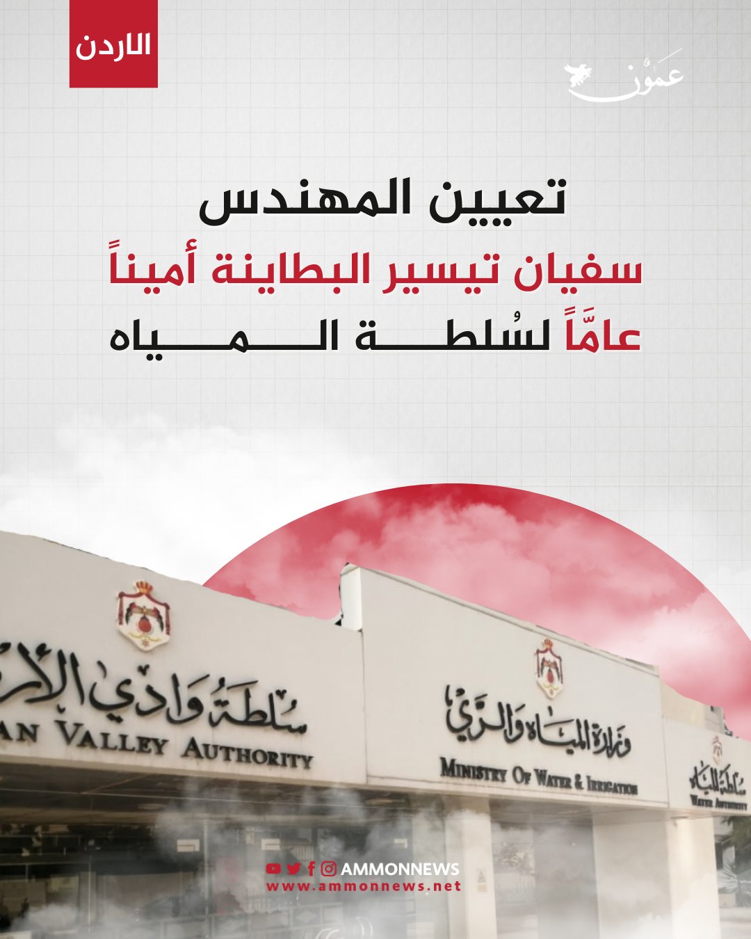 عمون - قرَّر مجلس الوزراء تعيين المهندس سفيان تيسير البطاينة أميناً عامَّاً لسُلطة المياه، والدكتور طارق مقطَّش أميناً عامَّاً للمركز الوطني لمكافحة الأوبئة والأمراض السَّارية، وذلك بعد حصولهما على أعلى الدَّرجات في المسابقة التي أجريت لإشغال الموقعين بحسب نظام القيادات الحكوميَّة.