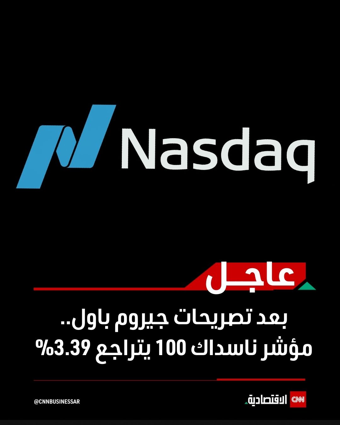 عاجل | بعد تصريحات جيروم باول.. مؤشر ناسداك 100 يتراجع 3.39% #العالم_بلغة_الأعمال