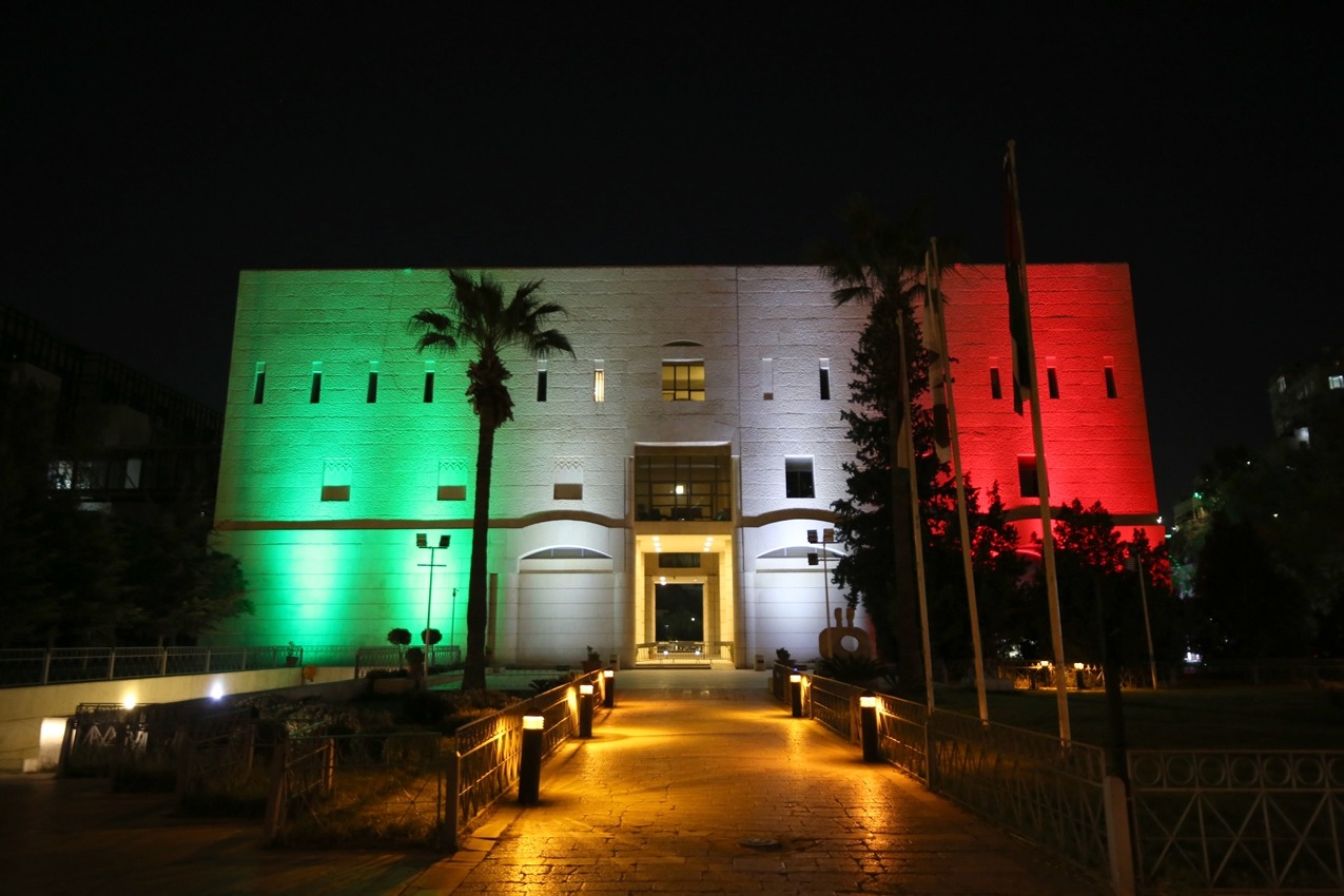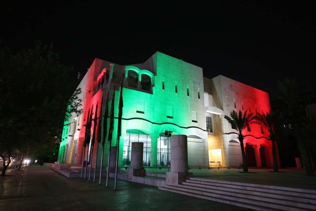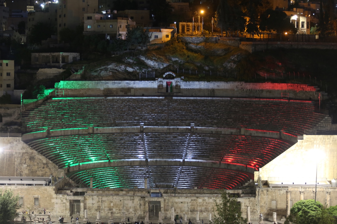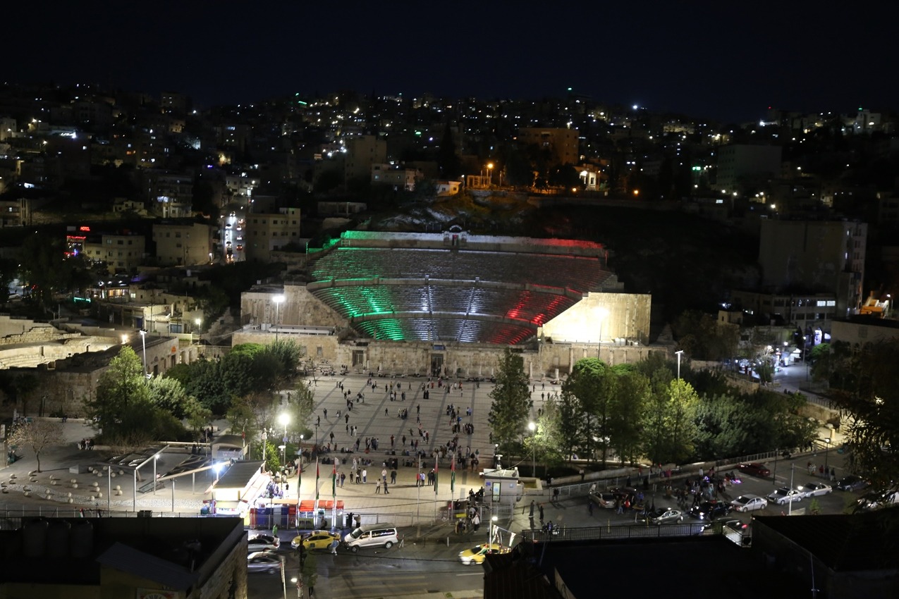 امانة عمان تضيء مبنى الامانة والمدرج الروماني بمناسبة يوم العلم #الأردن