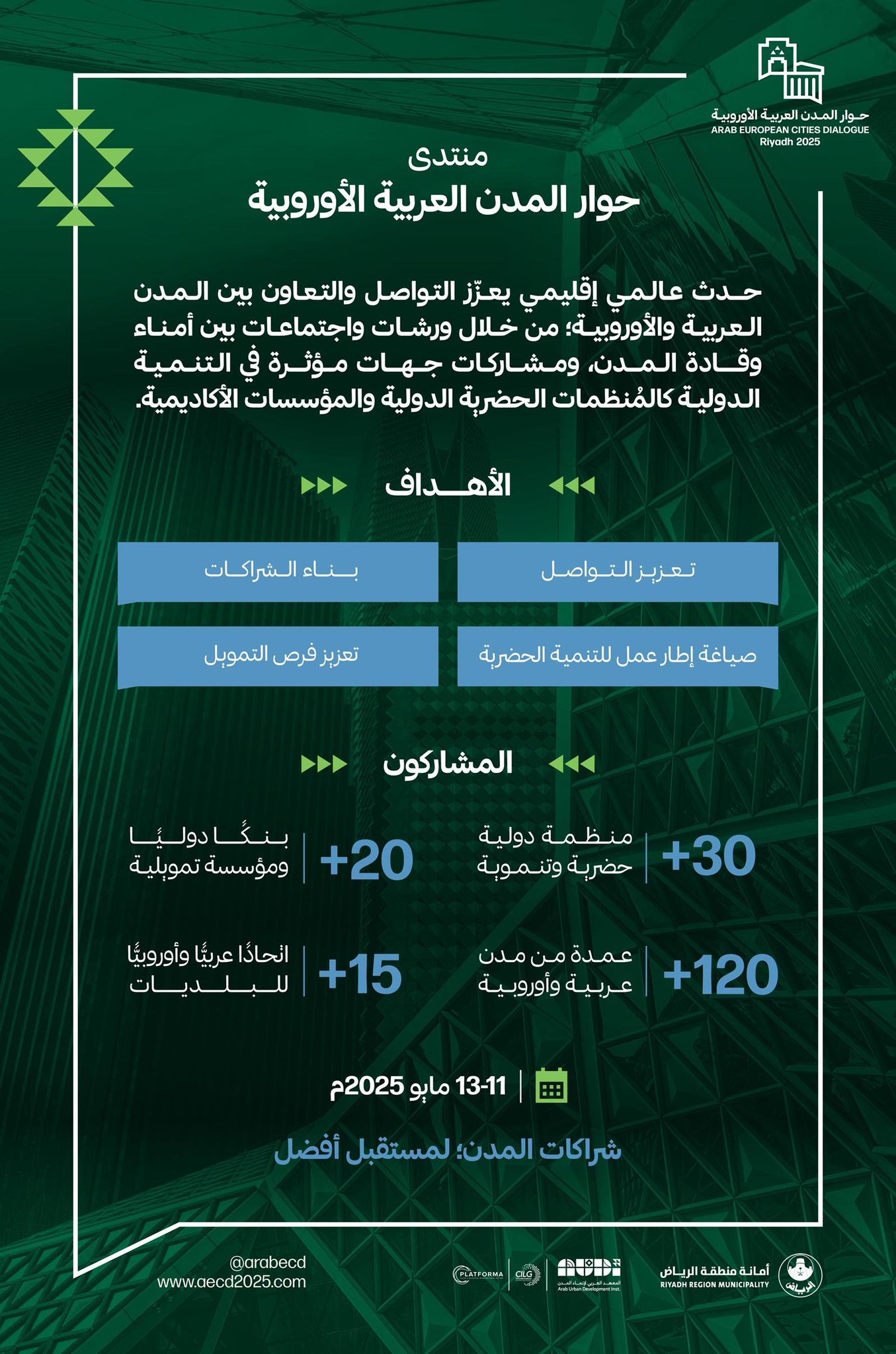 الرياض تستضيف أول منتدى لحوار المدن العربية الأوروبية بمشاركة كبيرة من عمداء وأمناء المدن