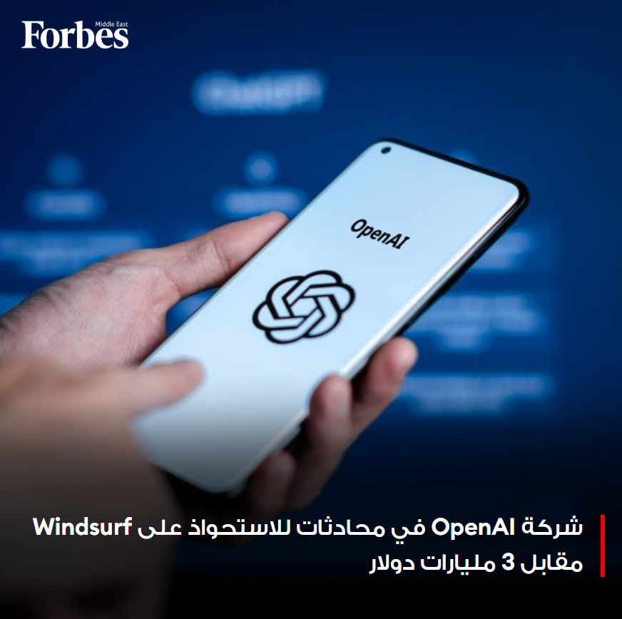 تجري شركة أوبن إيه آي OpenAI للذكاء الصناعي محادثات للاستحواذ على أداة وندسرف Windsurf للبرمجة عبر الذكاء الصناعي، والمعروفة سابقًا باسم كوديوم Codeium، مقابل حوالي 3 مليارات دولار، حسبما نقلت بلومبيرغ عن مصادر وصفتها بالمطلعة.