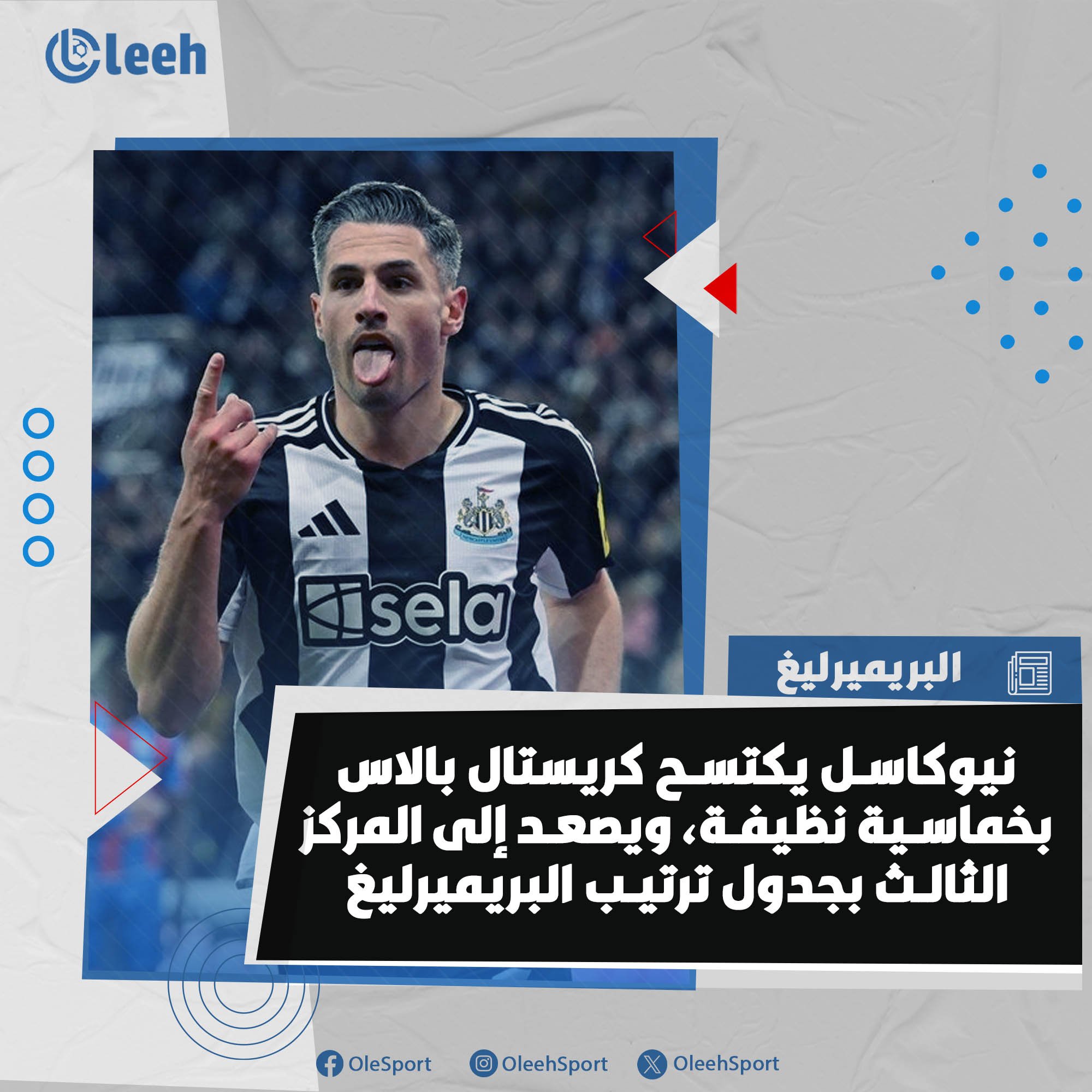 نيوكاسل يكتسح كريستال بالاس بخماسية نظيفة، ويصعد إلى المركز الثالث بجدول ترتيب البريميرليغ