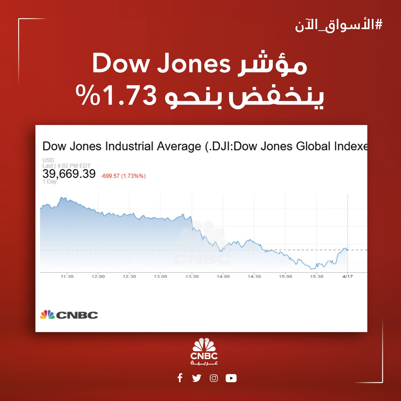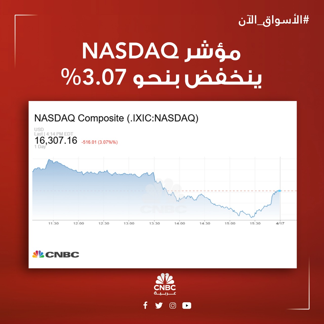 الأسواق_الآن| انخفاضات جماعية في ختام جلسة الأربعاء في وول ستريت، بعد المخاوف التي عبر عنها رئيس مجلس الاحتياطي الفدرالي جيروم باول بشأن التأثير الاقتصادي للرسوم الجمركية. مؤشر Dow Jones يغلق على هبوط بنحو 1.73% - مؤشر SP 500 يغلق على تراجع بنسبة 2.24% - مؤشر ينخفض بنحو 3.07%