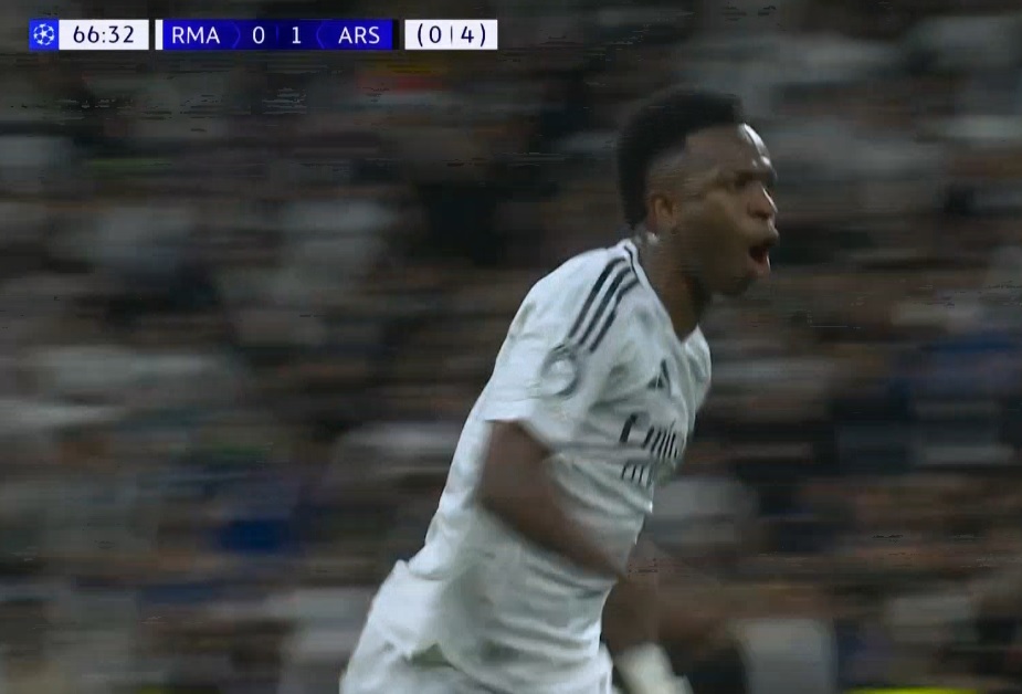 صرخة واحتفال فينيسيوس بعد هدفه في مرمى أرسنال