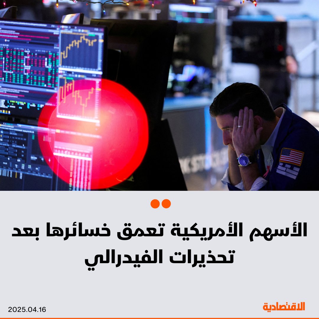 تراجعت الأسهم الأمريكية بعد تحذيرات رئيس الفيدرالي جيروم باول من أن الحرب التجارية قد تقوض أهداف التوظيف واستقرار الأسعار، بحسب "بلومبرغ". تراجع مؤشر "SP 500" بنسبة 2.2%. تكبد قطاع التكنولوجيا أكبر الخسائر مع هبوط "ناسداك" 3%. خسر "داو جونز" 1.7%. ارتفعت الأصول الآمنة مثل سندات الخزانة والذهب.