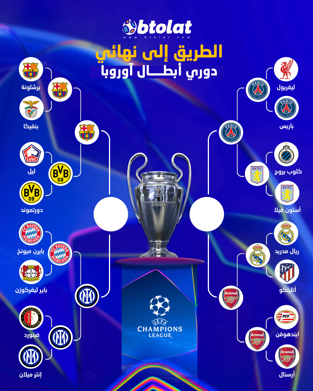 رسمياً | نصف نهائي دوري أبطال أوروبا. باريس أرسنال. برشلونة إنتر ميلان. برأيك من سيحقق اللقب هذا الموسم؟