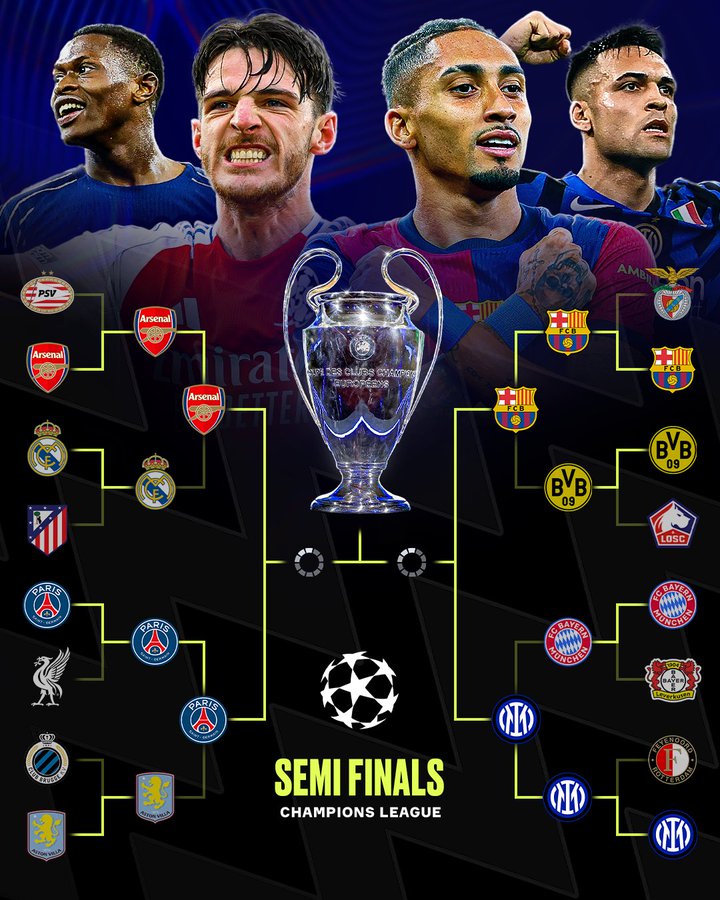 اكتمال عقد المتأهلين لنصف نهائي دوري أبطال أوروبا. برشلونة يواجه إنتر ميلان و آرسنال يصطدم ب #باريس_سان_جيرمان