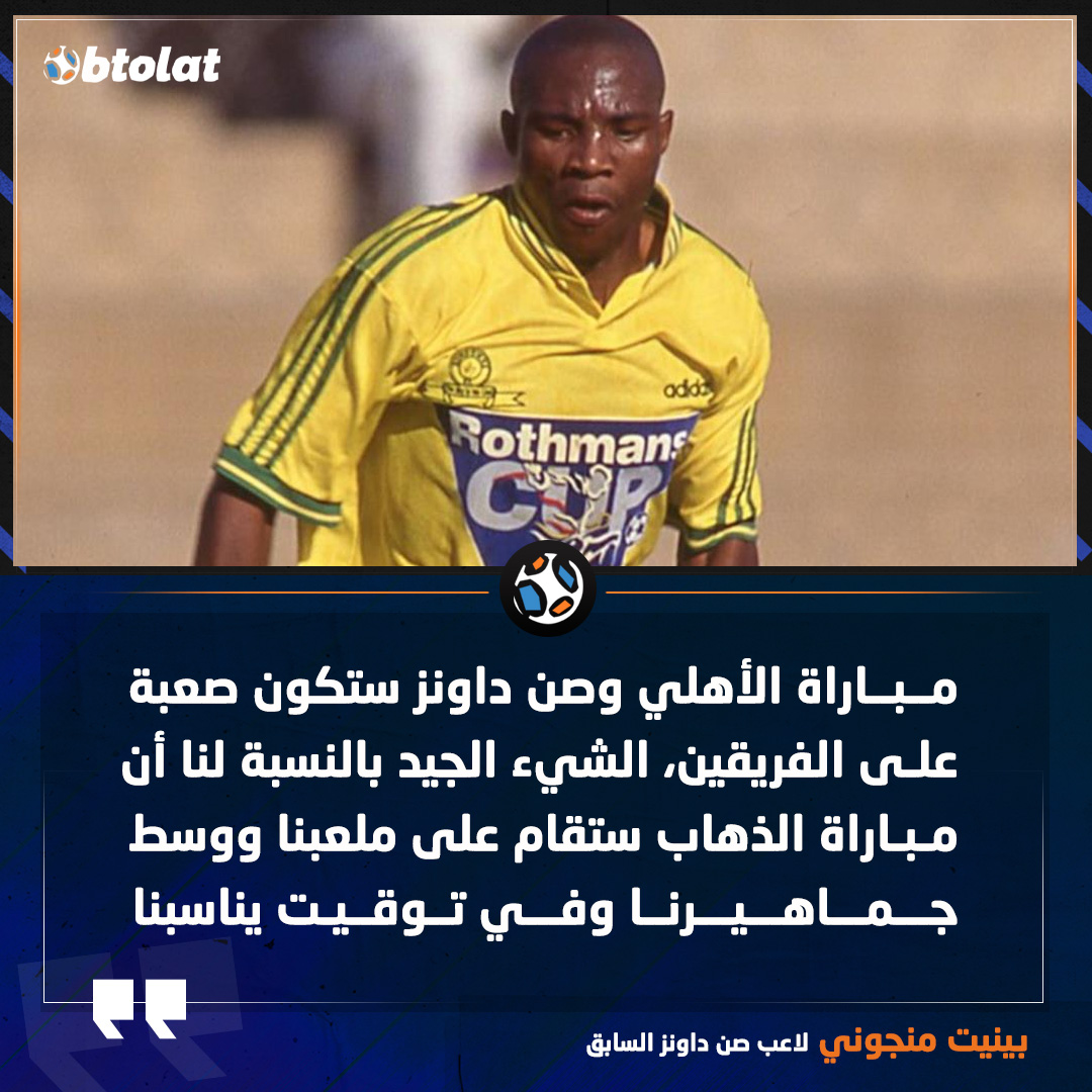 بينيت منجوني. مباراة الأهلي وصن داونز ستكون صعبة على الفريقين، الشيء الجيد بالنسبة لنا أن مباراة الذهاب ستقام على ملعبنا ووسط جماهيرنا وفي توقيت يناسبنا