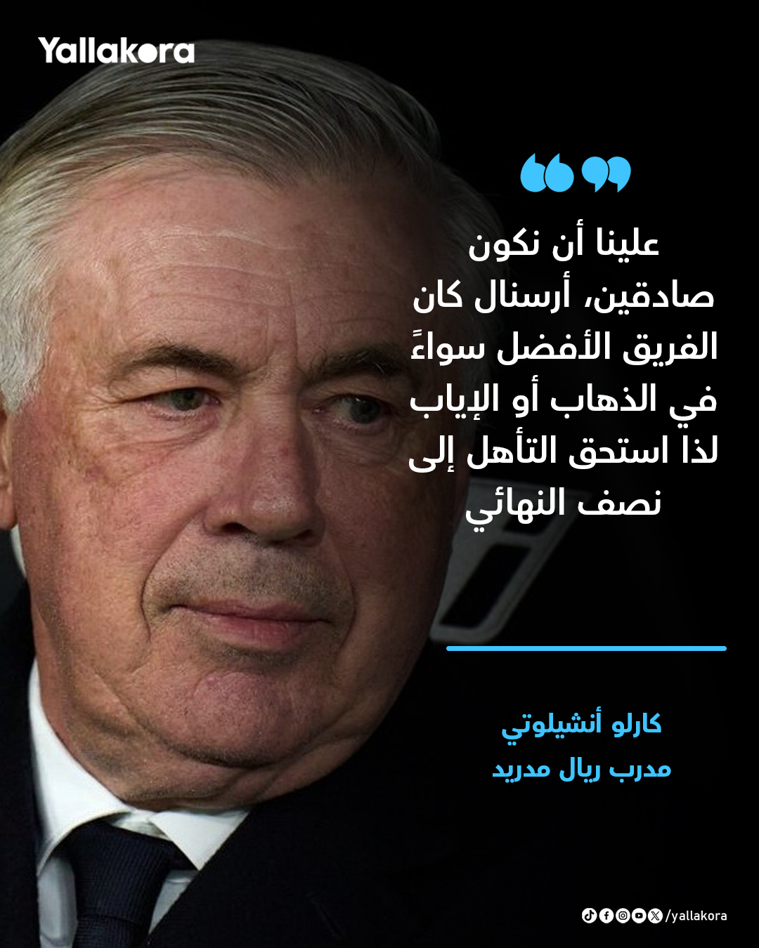 أنشيلوتي: علينا أن نكون صادقين، أرسنال كان الفريق الأفضل سواءً في الذهاب أو الإياب لذا استحق التأهل إلى نصف النهائي