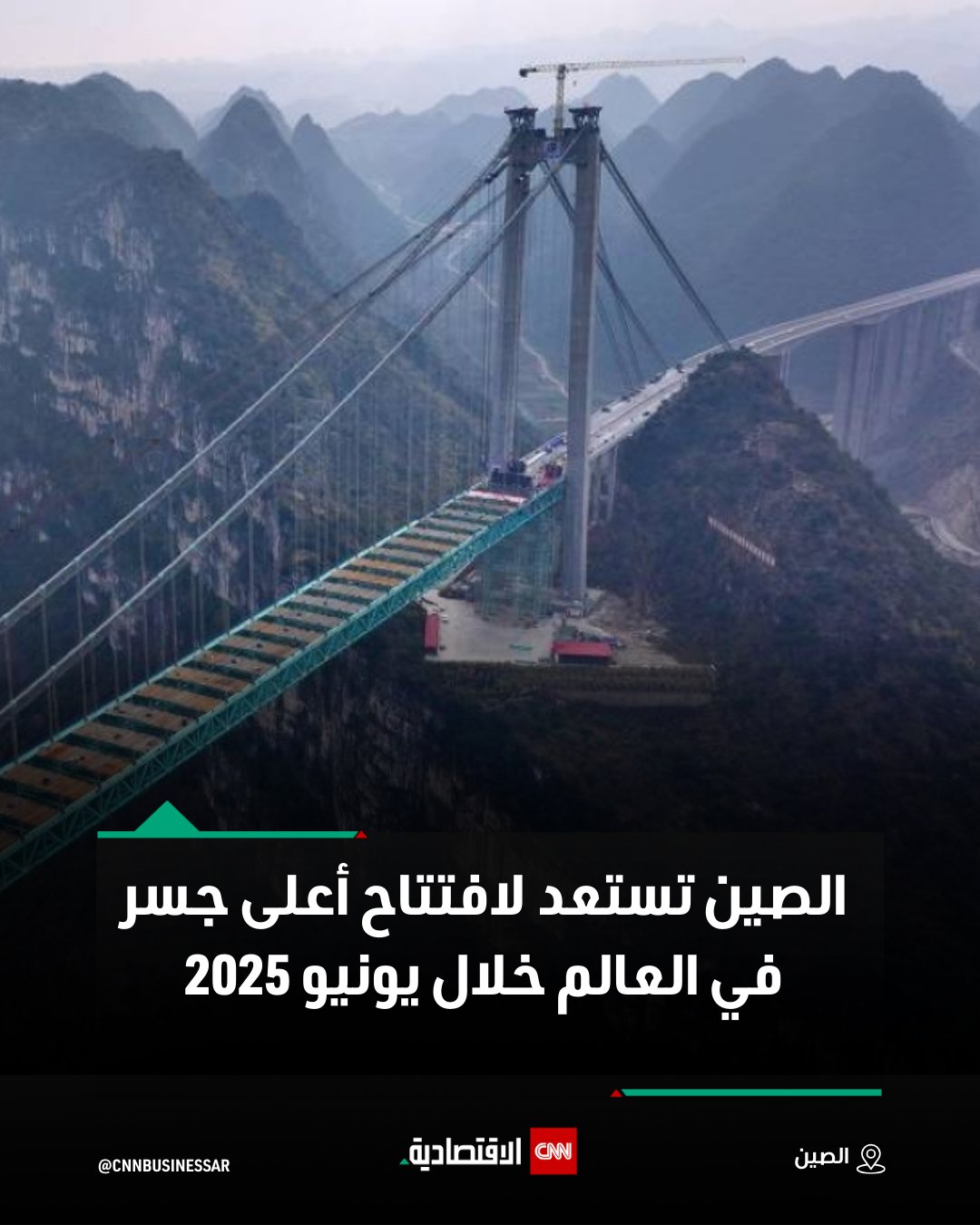تستعد دولة الصين لافتتاح أعلى جسر في العالم «هواجيانغ جراند كانيون» في يونيو 2025، وهو أحدث إنجاز هندسي في الدولة التي ينصب تركيزها على البنية التحتية.. ويقترب الجسر من نهاية أعمال البناء في قويتشو، جنوب غرب الصين، وسيبلغ ارتفاعه 2051 قدماً فوق مستوى النهر، أي يزيد بمقدار 947 قدماً على جسر ميلاو في فرنسا، حامل لقب "الجسر الأعلى" حالياً.. للتفاصيل | #العالم_بلغة_الأعمال