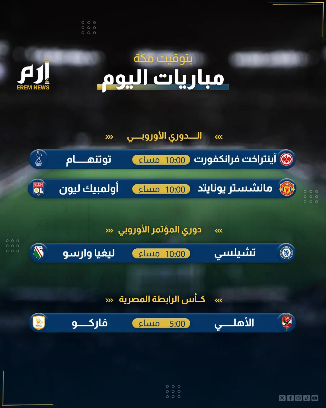 وفي مصر يلعب النادي الأهلي ضد فاركو في كأس عاصمة مصر