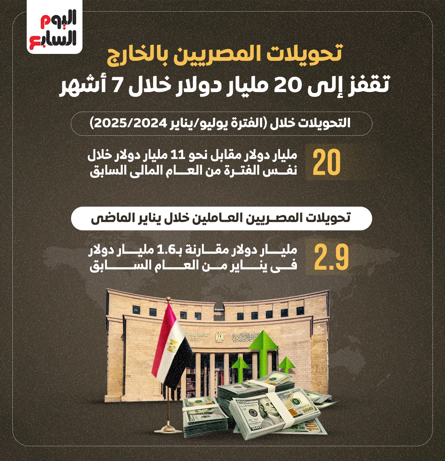 تحويلات المصريين بالخارج تقفز إلى 20 مليار دولار خلال 7 أشهر