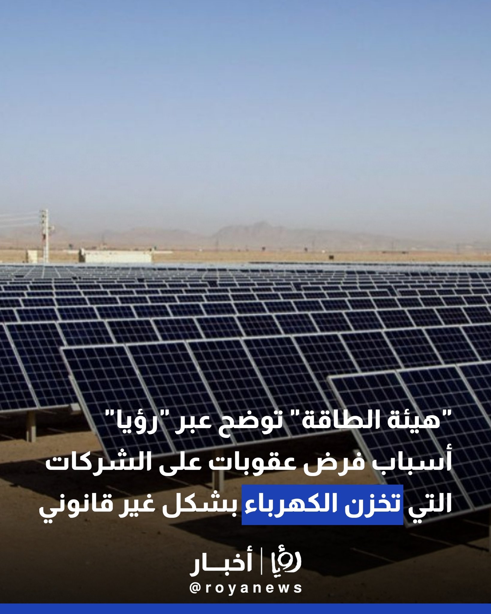 حذّر رئيس هيئة تنظيم قطاع الطاقة والمعادن، المهندس زياد السعايدة، من مخاطر تخزين الكهرباء بصورة غير مشروعة من قبل بعض شركات توليد الطاقة من خلال الألواح الشمسية، مؤكداً أن هذا السلوك يعد مخالفة صريحة لقانون الكهرباء، ويعرض مرتكبيه لغرامات مالية لا تقل عن 100 ألف دينار ولا تزيد عن 200 ألف دينار، أو الحبس لمدة تتراوح بين سنة وثلاث سنوات.