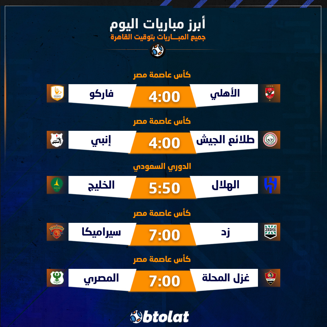 أهم مباريات اليوم - 4 مباريات في كأس عاصمة مصر - إياب ربع نهائي الدوري الأوروبي