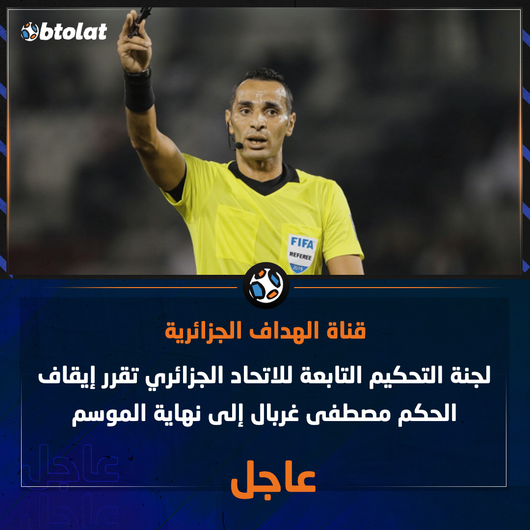 حسب قناة الهداف الجزائرية. لجنة التحكيم التابعة للاتحاد الجزائري تقرر إيقاف الحكم مصطفى غربال إلى نهاية الموسم. جاء إيقاف الحكم الدولي الجزائري بسبب أدائه التحكيمي المثير خلال مباراة نادي مولودية الجزائر ومضيفه فريق أولمبيك آقبو