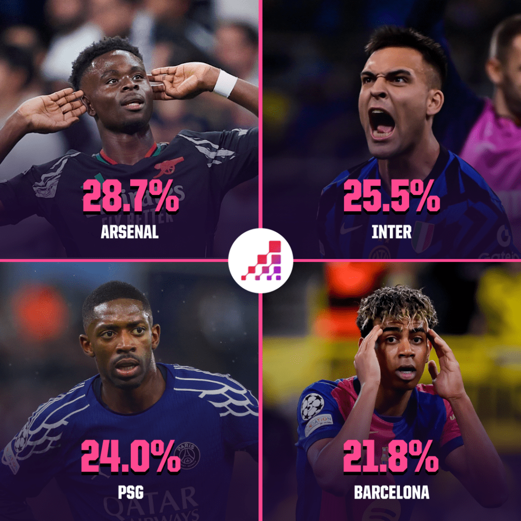 أرسنال هو المرشح الجديد للفوز بدوري أبطال أوروبا هذا الموسم وفقًا ل أوبتا! أرسنال: 28.7%. إنتر: 25.5%. باريس سان جيرمان: 24%. برشلونة: 21.8%. هل تتفق مع هذا التحليل؟ ( )