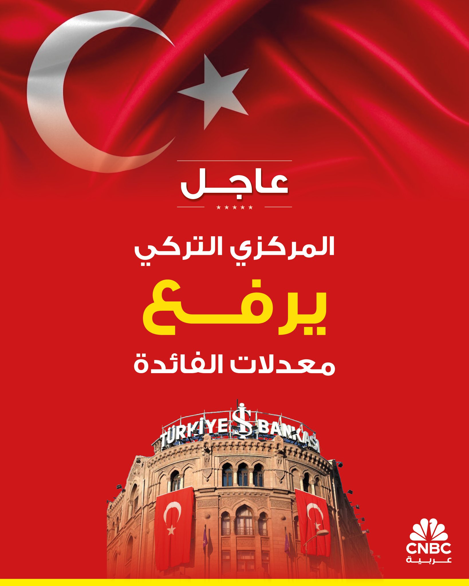 عاجل | المركزي التركي يرفع معدل الفائدة الرئيسي 350 نقطة أساس