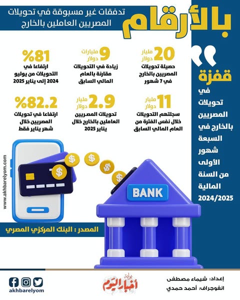 بالأرقام.. تدفقات غير مسبوقة في تحويلات المصريين العاملين بالخارج | انفوجراف