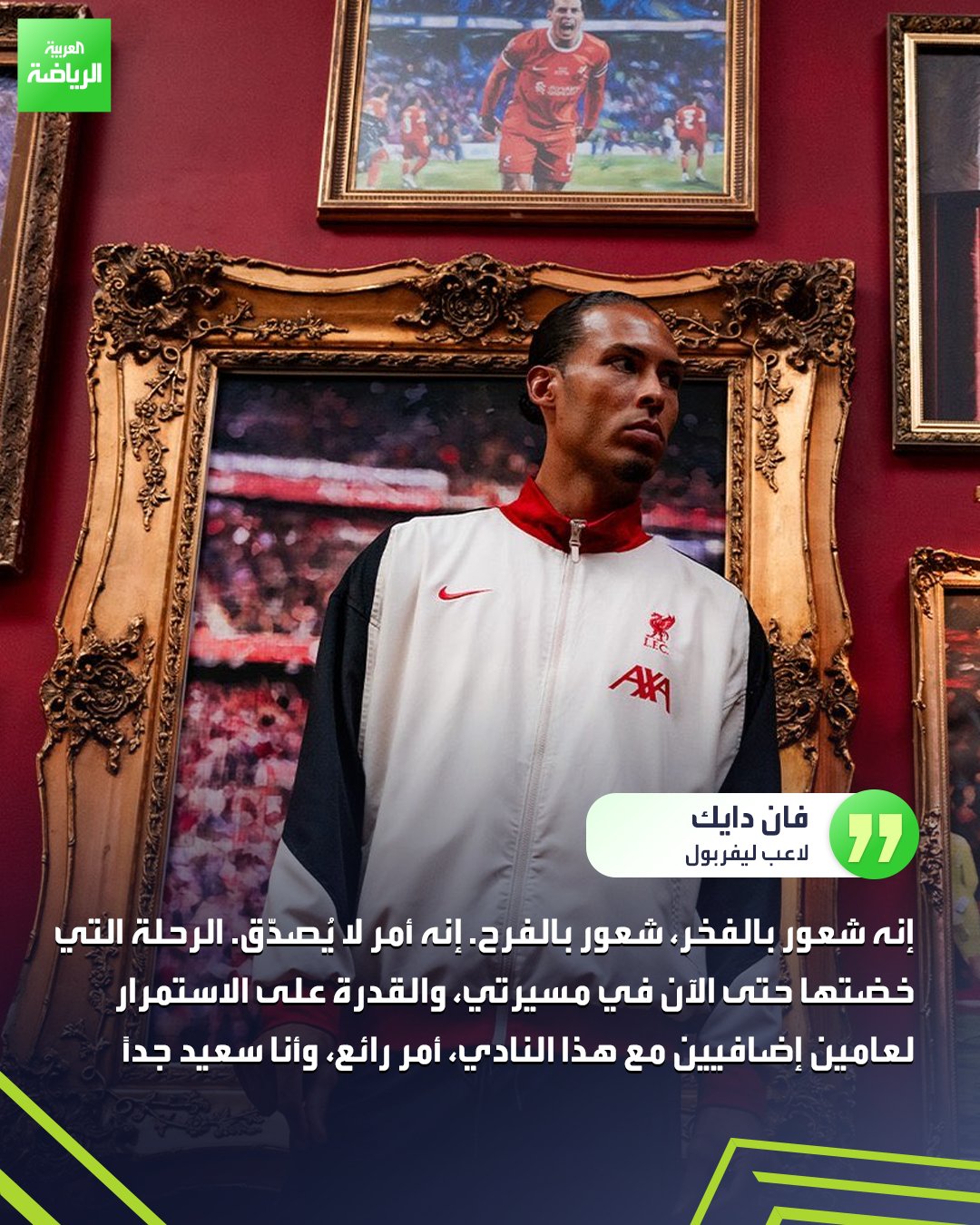 فان دايك يُعبر عن سعادته بعد تجديد عقده مع ليفربول لمدة موسمين العريية _رياضة