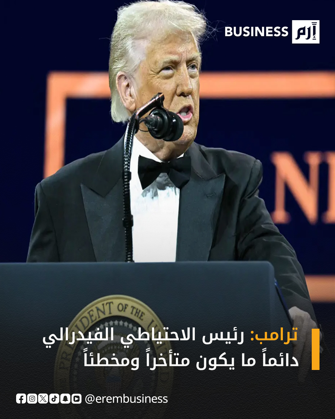 ردّ الرئيس الأميركي، دونالد ترامب، على تصريحات رئيس الاحتياطي الفيدرالي، جيروم باول، التي أدلى بها أمس للنادي الاقتصادي في شيكاغو، وانتقد فيها ترامب بسبب سياساته التجارية.. وقال ترامب اليوم الخميس، «باول دائمًا ما يكون متأخرًا ومخطئًا»، موضحًا أن باول كان يجب عليه خفض أسعار الفائدة منذ زمن طويل.