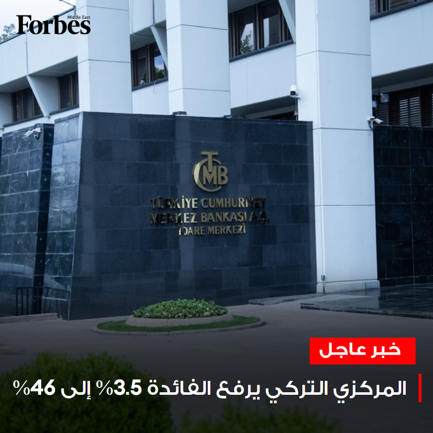 عاجل.. البنك المركزي التركي يرفع الفائدة بمقدار 3.5%، من 42.5% إلى 46%، في ظل تراجع الليرة التركية أمام الدولار وتصاعد الاضطرابات الاقتصادية في البلاد. #فوربس