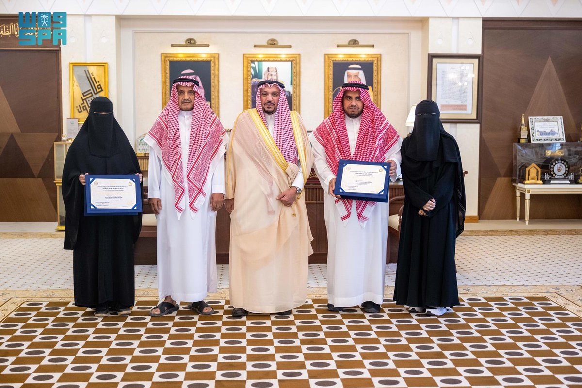 استقبل صاحب السمو الملكي الأمير الدكتور فيصل بن مشعل بن سعود بن عبدالعزيز أمير منطقة القصيم في مكتبه بالإمارة اليوم، الفائزين من أبناء المنطقة بجائزة خادم الحرمين الشريفين الملك سلمان بن عبدالعزيز لحفظ القرآن الكريم وتجويده وتفسيره في دورتها السادسة والعشرين، بحضور مدير عام فرع وزارة الشؤون الإسلامية والدعوة والإرشاد بالمنطقة الدكتور عبدالله الجويبري.