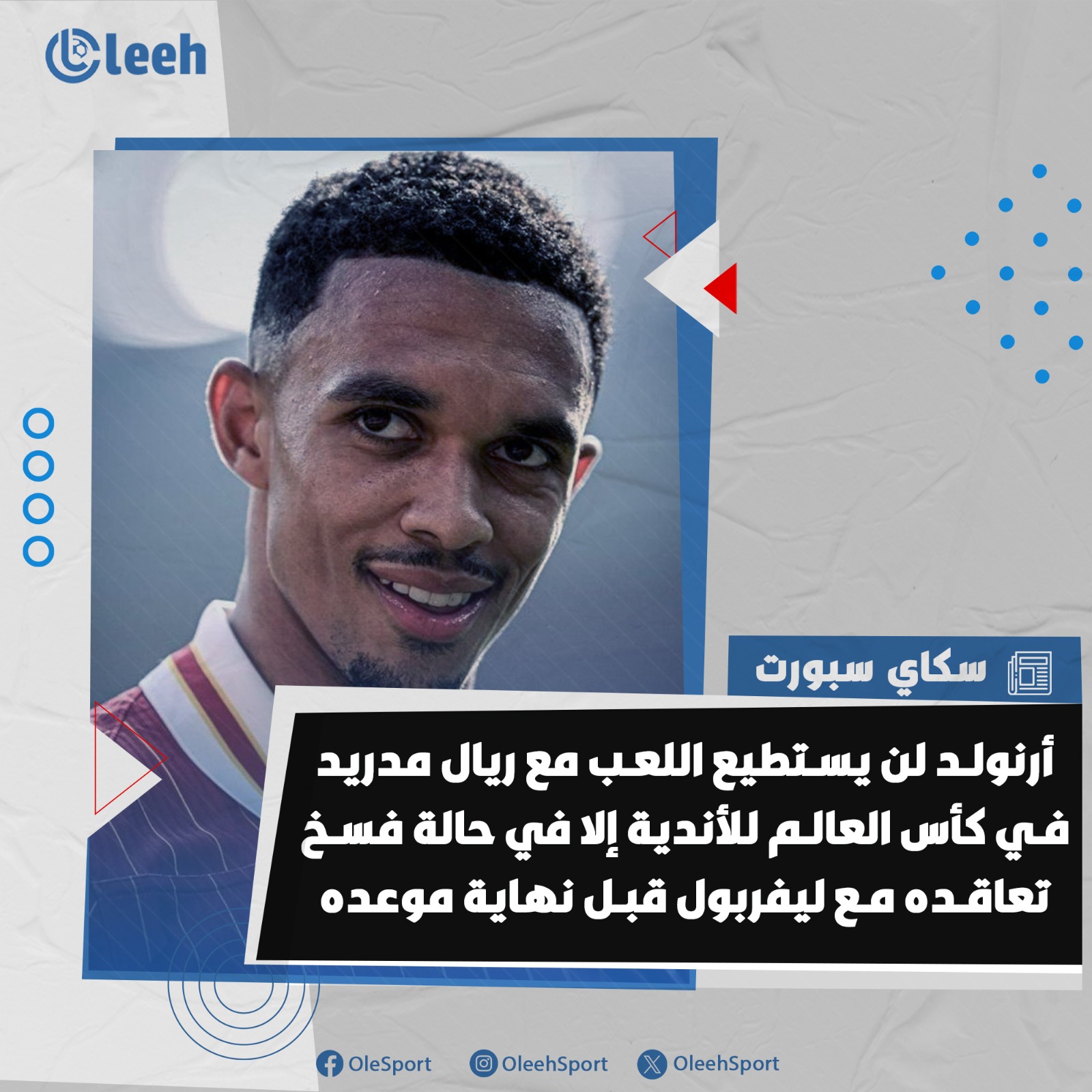 سكاي سبورت | أرنولد يحتاج لفسخ تعاقده مع ليفربول قبل نهاية موعده من أجل المُشاركة مع ريال مدريد في كأس العالم للأندية المُقبل