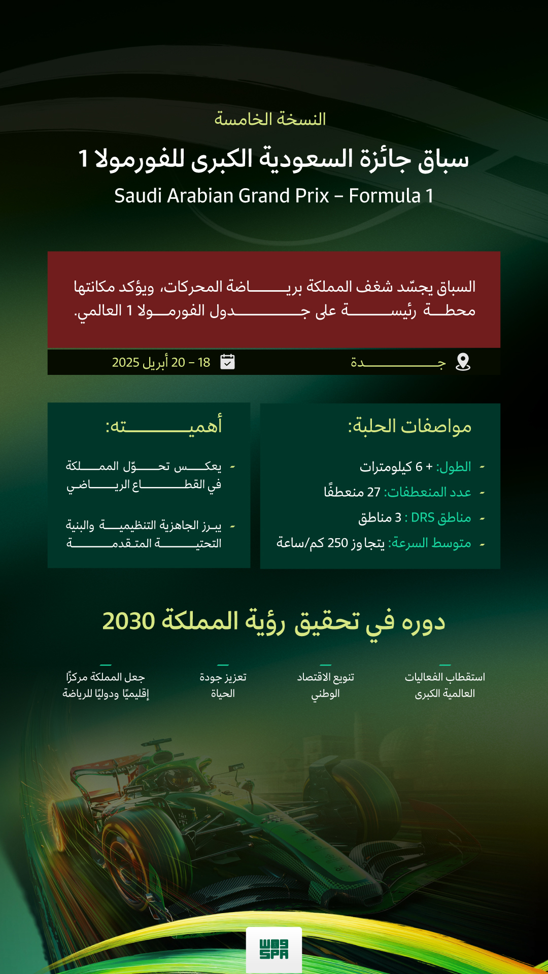 جدة تحتضن النسخة الخامسة من سباق جائزة السعودية الكبرى "للفورمولا1" على واحدة من أسرع حلبات العالم.
