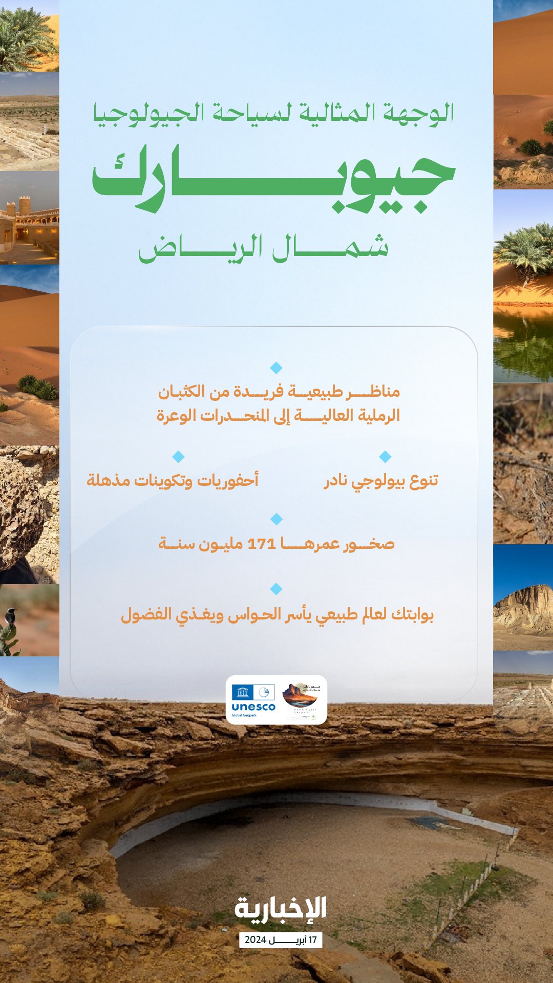 إنفوجرافيك الإخبارية | شمال الرياض جيوبارك بوابتك لعالم طبيعي يأسر الحواس ويغذي الفضول #أرضنا_تراث_العالم