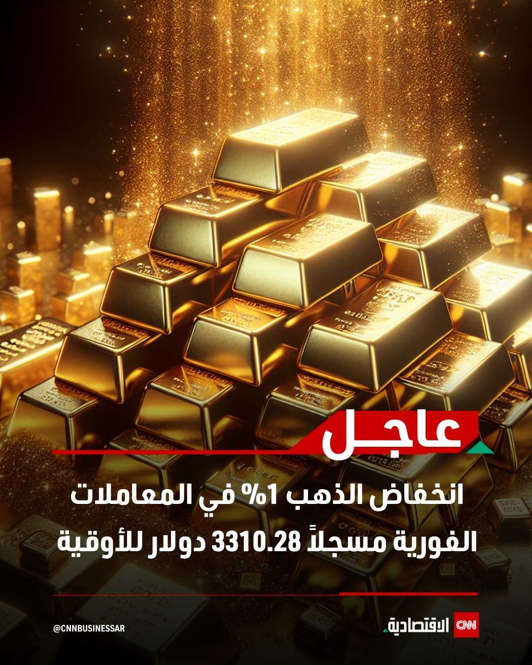 عاجل | انخفاض الذهب 1% في المعاملات الفورية مسجلاً 3310.28 دولار للأوقية #العالم_بلغة_الأعمال
