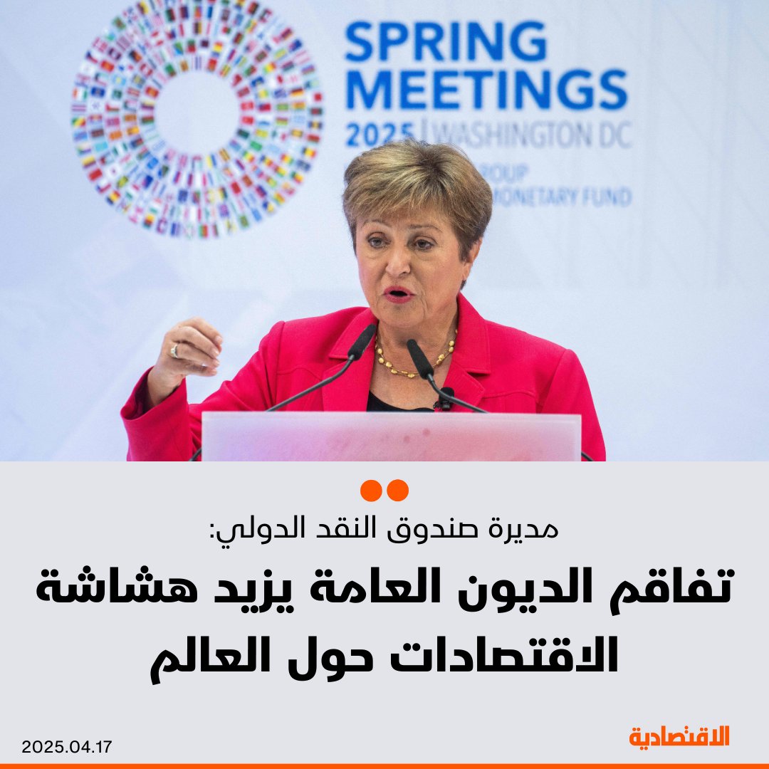 مديرة صندوق النقد الدولي كريستالينا جورجييفا: - تفاقم الديون العامة يزيد هشاشة الاقتصادات حول العالم - الولايات المتحدة مطالبة بخفض العجز الفيدرالي لكبح الدين الخارجي - الصين بحاجة لتعزيز الاستهلاك المحلي وتقليص هيمنة الدولة على الصناعة - منطقة اليورو في حاجة لاتحاد مصرفي وسوق موحدة للخدمات لزيادة النمو