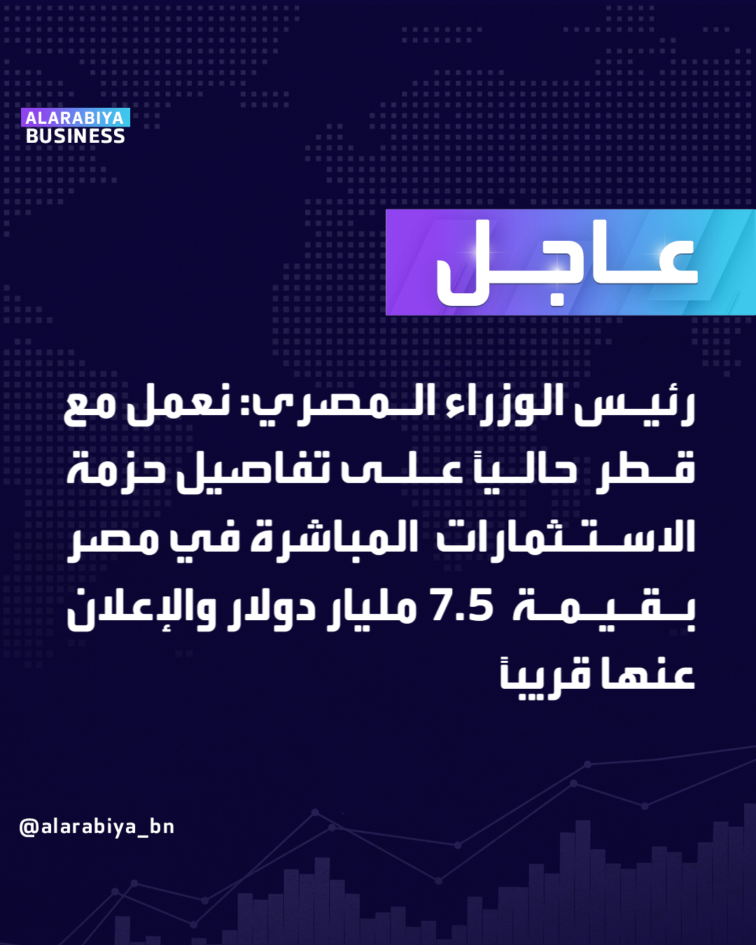 عاجل| رئيس الوزراء المصري مصطفى مدبولي: نعمل مع قطر حالياً على تفاصيل حزمة الاستثمارات المباشرة في مصر بقيمة 7.5 مليار دولار والاعلان عنها قريباً. تم توضيح الوضع الاقتصادي في مصر والتطورات التي يشهدها أثناء زيارة الرئيس ل الكويت. زخم كبير في العلاقات المصرية السعودية خاصة بعد توقيع اتفاقية حماية الاستثمارات المتبادلة ونتوقع ضخ مزيد من الاستثمارات السعودية في مصر في عدة قطاعات _Business