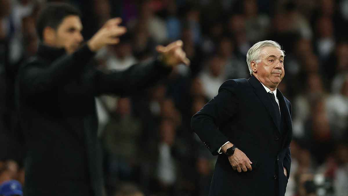 وفي الموسم الماضي، فاز أنشيلوتي بلقب دوري أبطال أوروبا، بعدما تغلب ريال مدريد على بروسيا دورتموند في استاد ويمبلي، لكن فريقه خسر 2-1 على أرضه أمام آرسنال، ليخسر 5-1 في مجموع مباراتي الذهاب والإياب.