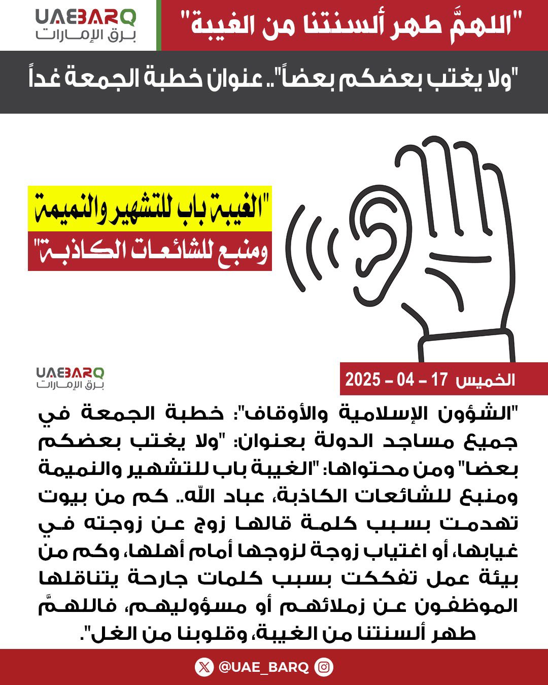 "ولا يغتب بعضكم بعضاً".. عنوان خطبة الجمعة غداً.
