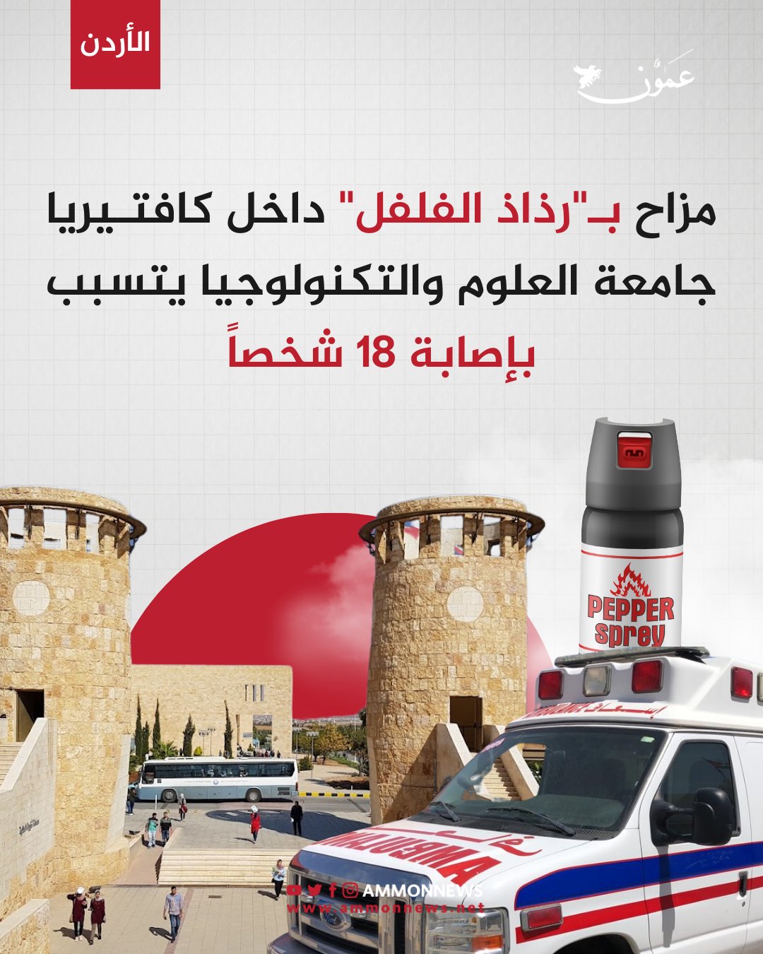 مزاح ب"رذاذ الفلفل" داخل كافتيريا جامعة العلوم والتكنولوجيا يتسبب بإصابة 18 شخصاً #عمون