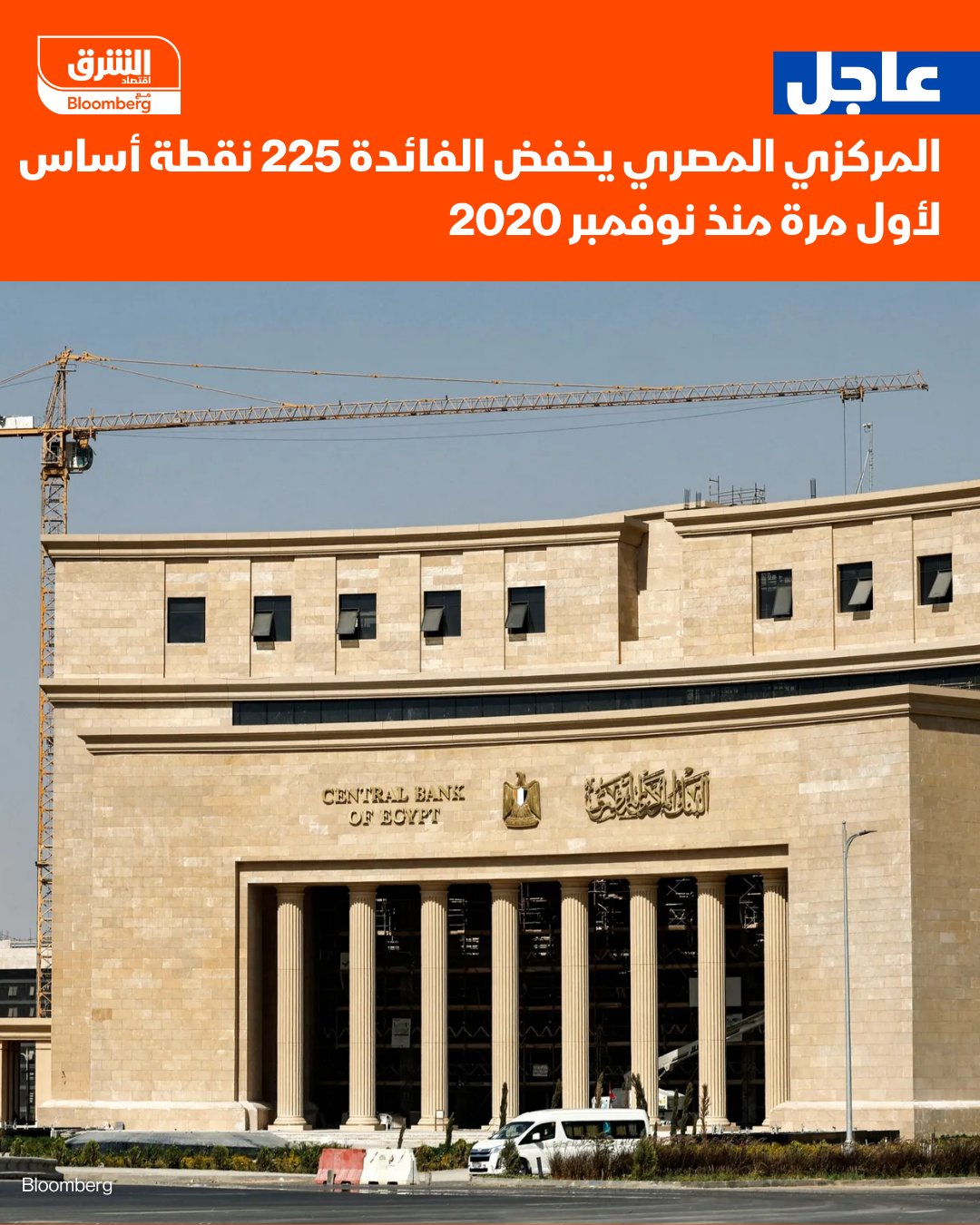 عاجل المركزي المصري يخفض أسعار الفائدة 225 نقطة أساس لأول مرة منذ نوفمبر 2020 إلى 26% للإقراض و25% للإيداع #اقتصاد_الشرق