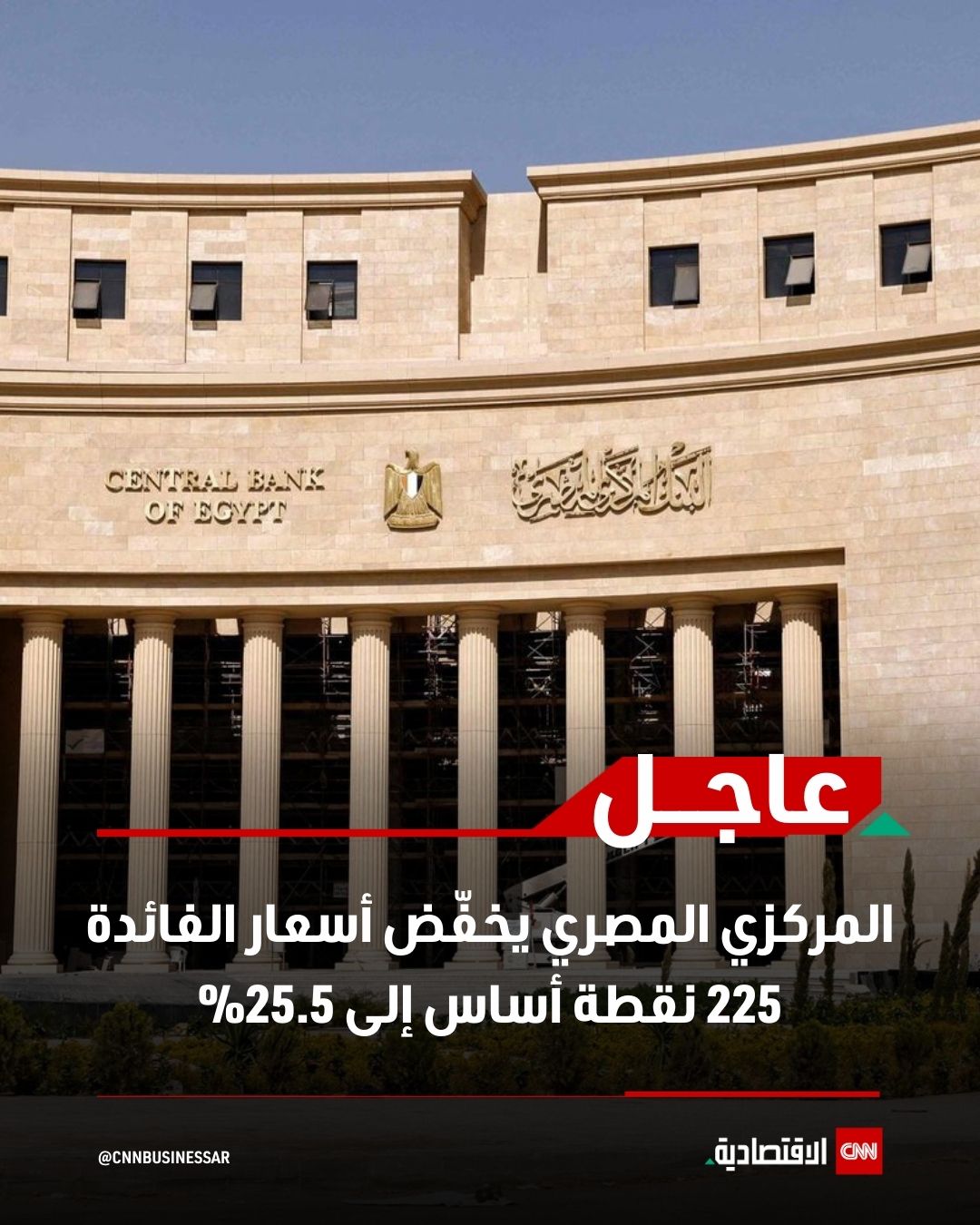 عاجل | المركزي المصري يخفّض أسعار الفائدة 225 نقطة أساس إلى 25.5% #العالم_بلغة_الأعمال