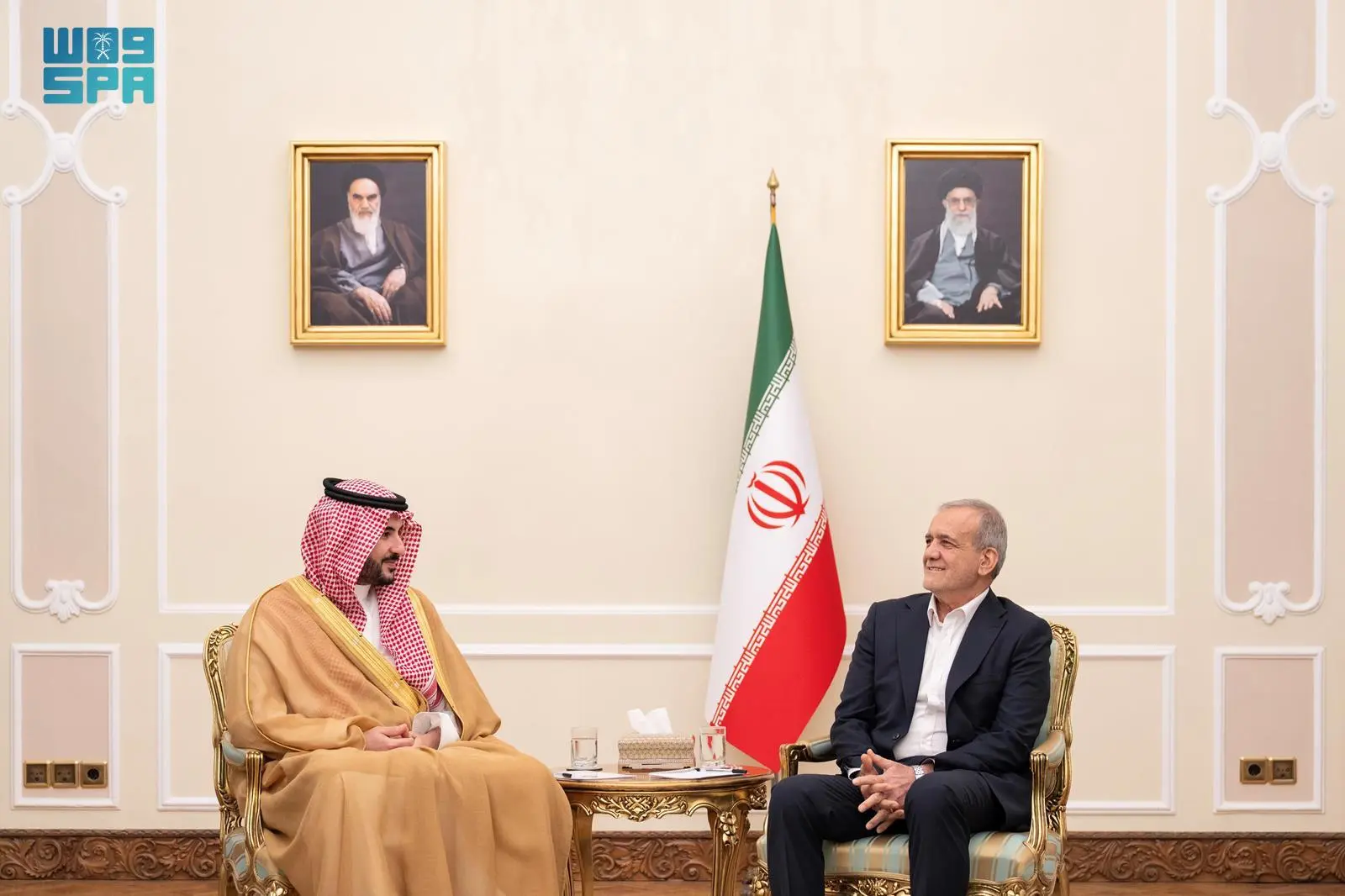 بتوجيه من القيادة -أيدها الله- التقى صاحب السمو الملكي الأمير خالد بن سلمان بن عبدالعزيز وزير الدفاع، في القصر الرئاسي بالعاصمة الإيرانية طهران اليوم، فخامة الرئيس الدكتور مسعود بزشكيان رئيس الجمهورية الإسلامية الإيرانية.