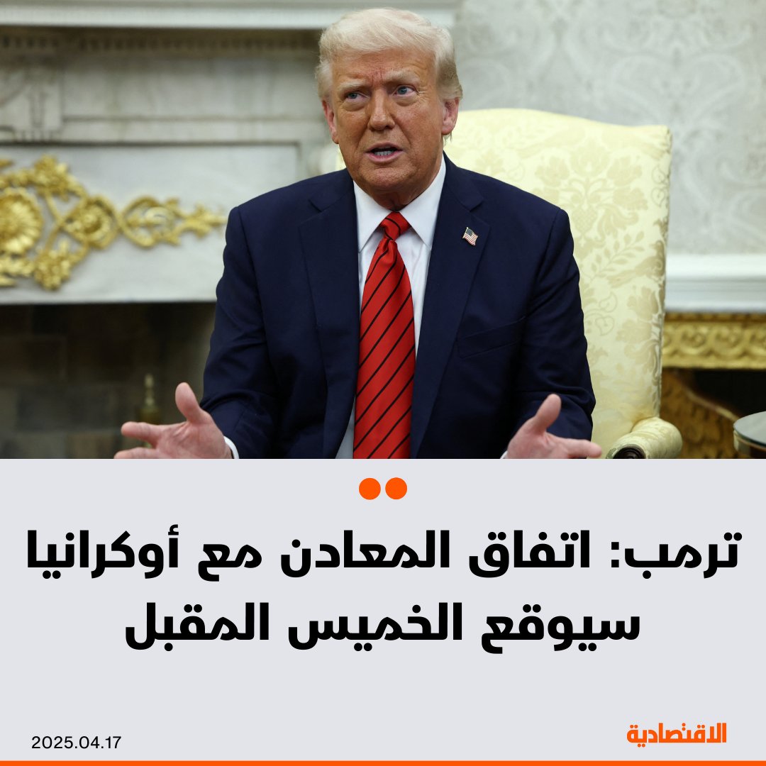 وأضاف ترمب لصحافيين في البيت الأبيض "لدينا اتفاق المعادن وأعتقد أنه سيوقع الخميس المقبل.. قريبا. أفترض أنهم سيلتزمون الاتفاق. لذلك سنرى. لكن لدينا اتفاق بشأن ذلك".