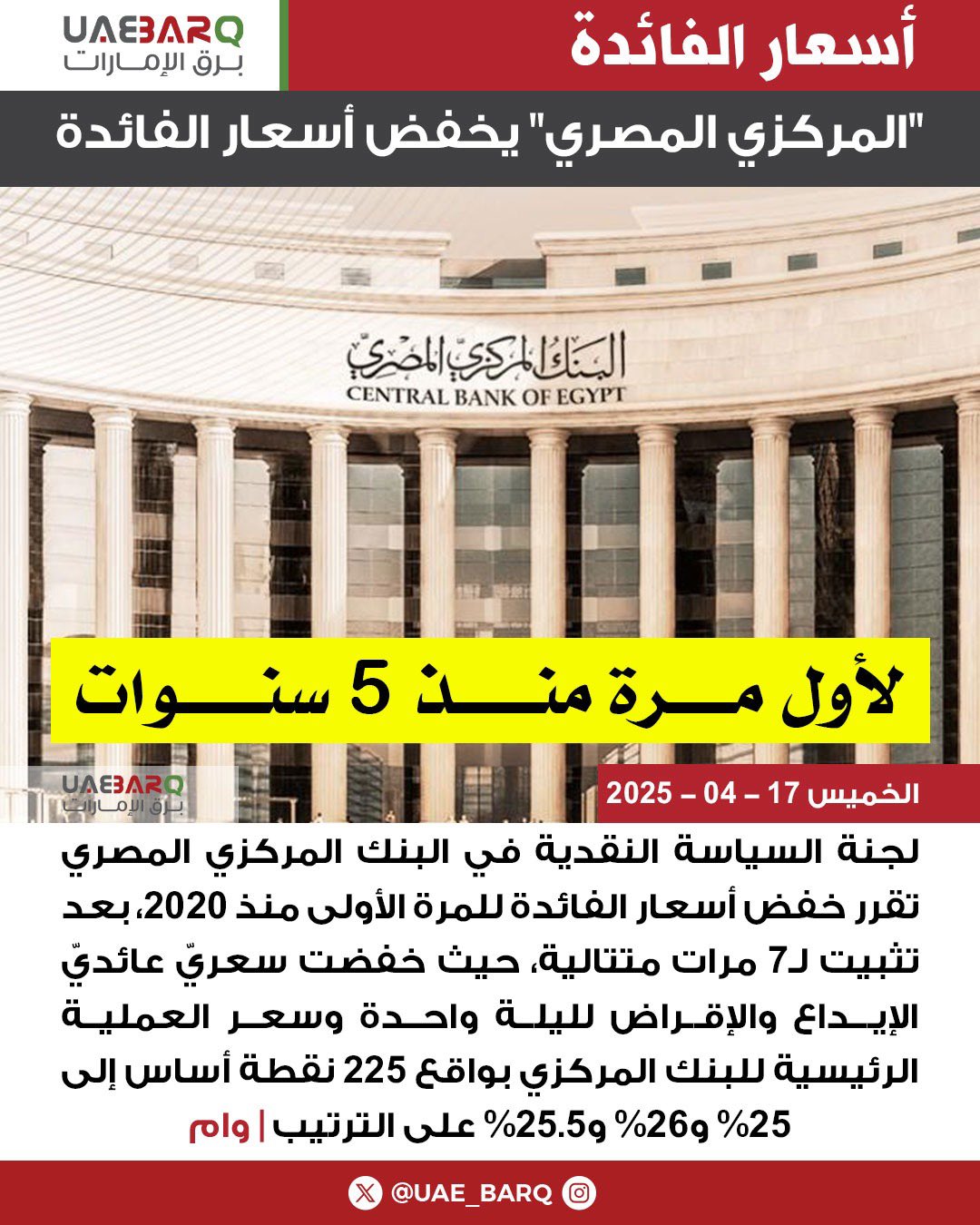 "المركزي المصري" يخفض أسعار الفائدة لأول مرة منذ 5 سنوات | وام