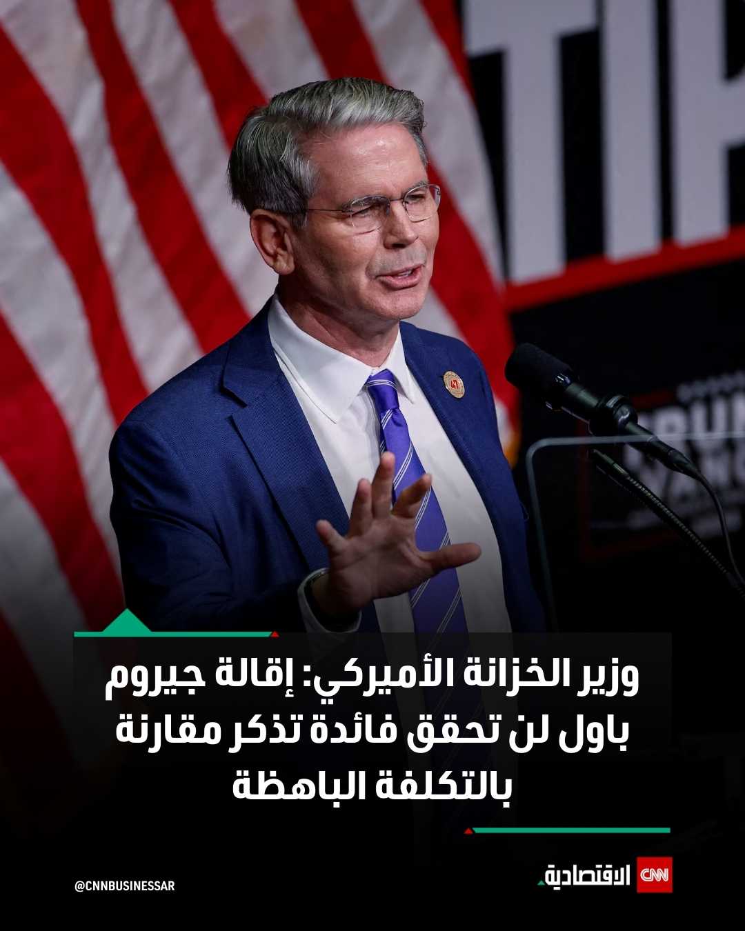 وزير الخزانة الأميركي: إقالة جيروم باول لن تحقق فائدة تذكر مقارنة بالتكلفة الباهظة #العالم_بلغة_الأعمال