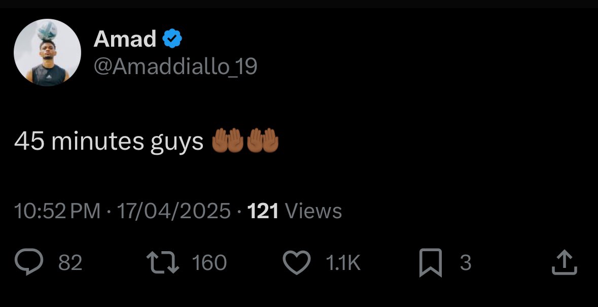 أماد ديالو عبر حسابه على : "45 دقيقة يا رفاق "