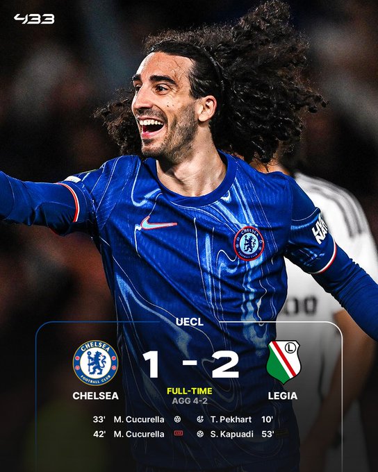 رغم الخسارة على أرضه وأمام جماهيره 2-1.. تشيلسي يتأهل إلى نصف نهائي دوري المؤتمر الأوروبي مستفيدًا من فوزه ذهابًا على ليغيا وارسو 3-0