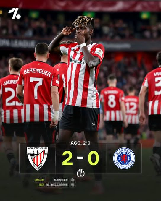 أثلتيك بيلباو يتأهل إلى نصف نهائي الدوري الأوروبي بعد الفوز على رينجرز الاسكتلندي 2-0