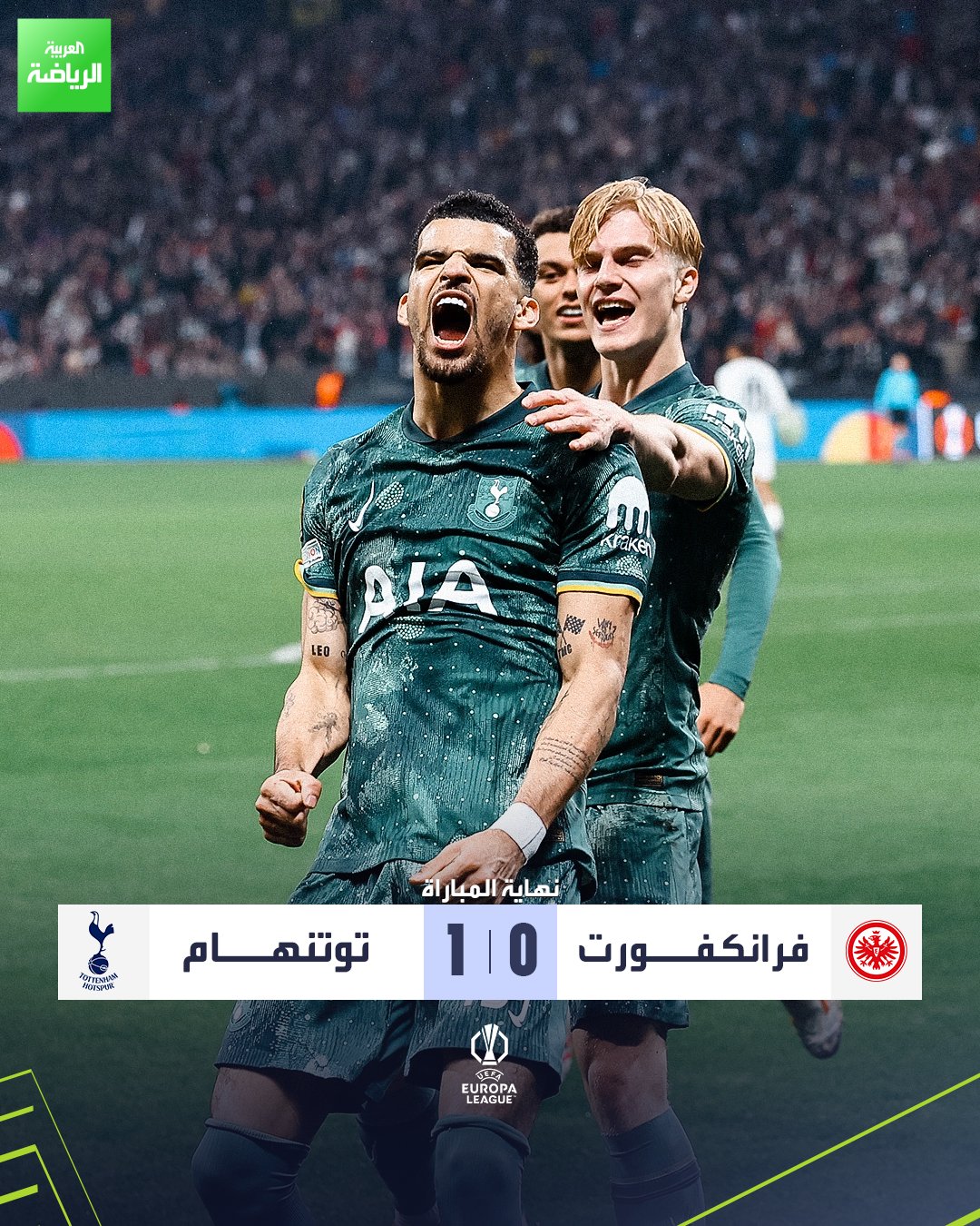 توتنهام يخطف بطاقة العبور إلى نصف نهائي الدوري الأوروبي من ألمانيا بعد فوزه على فرانكفورت بنتيجة (2-1) في مجموع مباراتي الذهاب والإياب. فرانكفورت 0 توتنهام 1 (سولانكي) الدوري الأوروبي دوتش بانك بارك _رياضة
