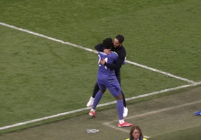 أموريم وأونانا بعد هدف ماجواير. كلاهما يعرف مدى أهمية الهدف خاصة لهما